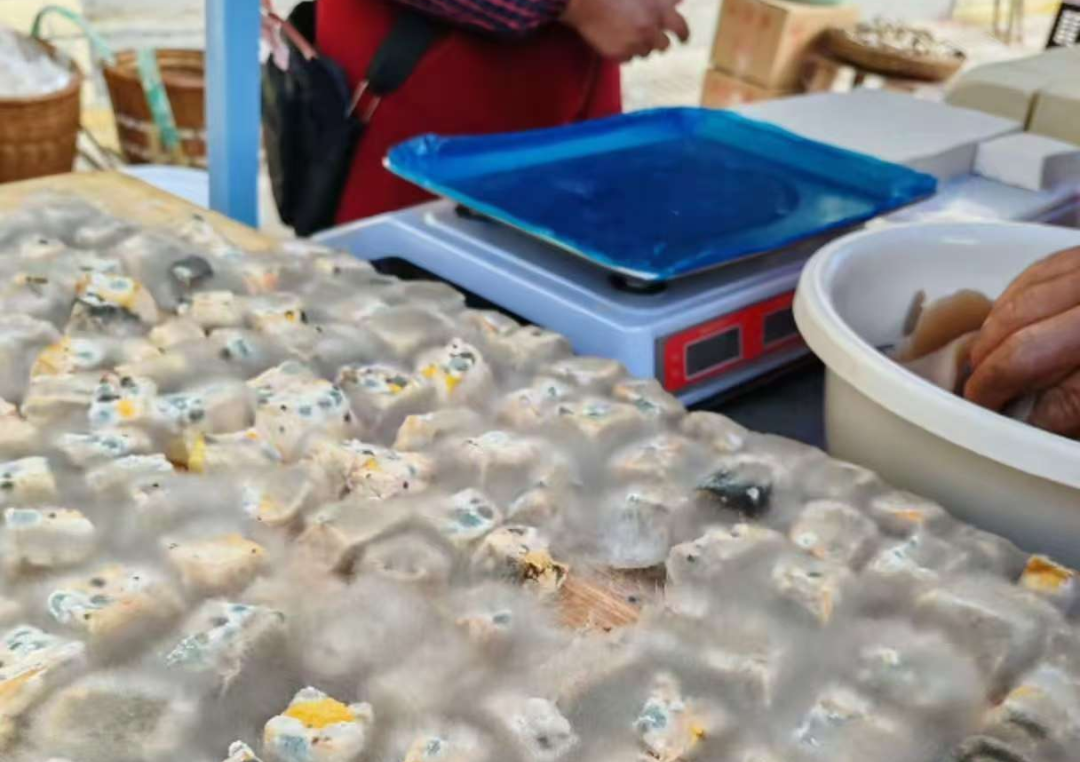 偶遇正在贩卖的“花色”霉豆腐,仅靠肉眼是无法准确辨别是什么菌的丨网络